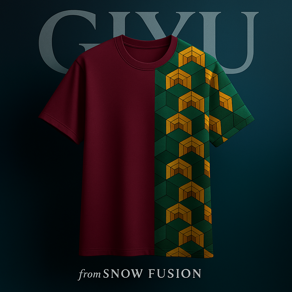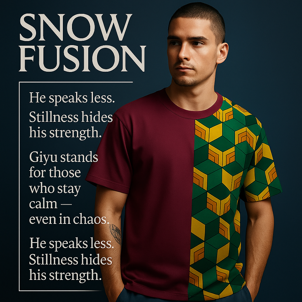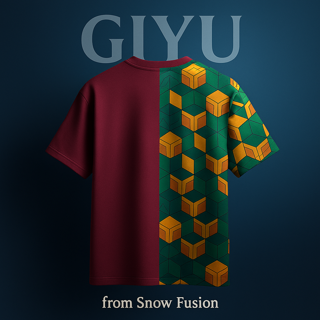 Dead Calm Haori captures Giyu’s composed, emotionless aura with its split-pattern teal and brick-red design.