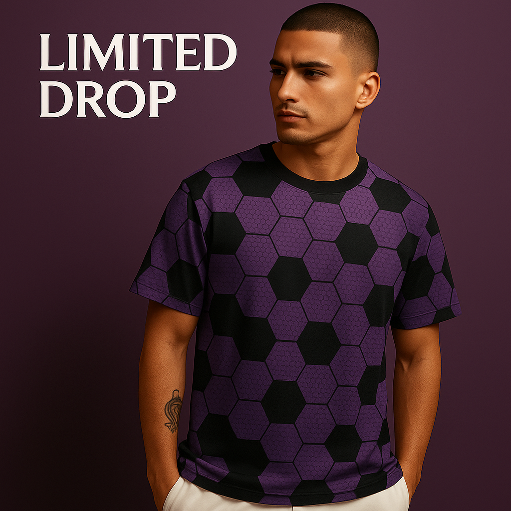 The maroon base is wrapped in chaotic crescent moon motifs, enhanced with grain-textured layers to give the tee depth and maturity. Printed using top-grade sublimation, the artwork stays sharp and shadow-rich over time. Perfect for fans of darker aesthetics and stronger silhouettes.